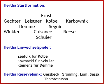Hertha-Mannschaftsaufstellung, Einwechselspieler und Reservebank:
